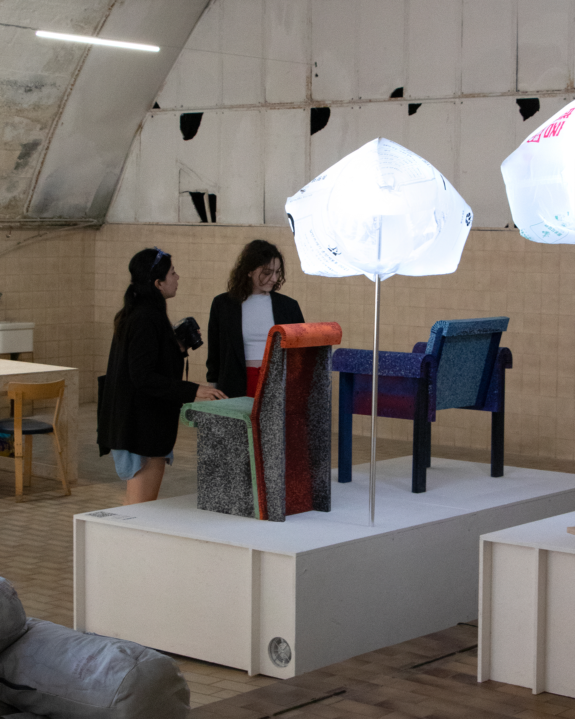 Re;Collective exhibition, held by Korean fashion brand Re;Code, is a collection of works by international designers under the theme of ‘Upcycle’. For Milan design show 2023, the brand has team up with Jo Nagasaka and Schemata Architects for the curation of the show and site installation. KUO DUO showcased new piece of furniture called KERF PLASTIC CHAIR & ARMCHAIR, the result of their current experiments using recycled plastic.